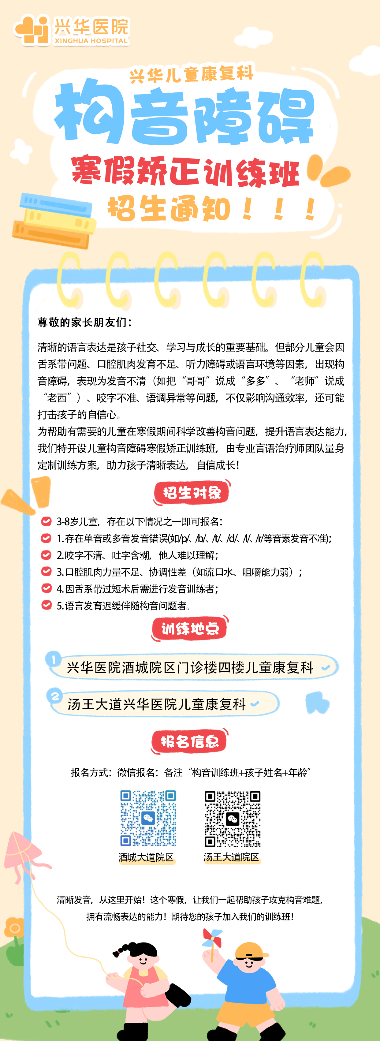 构音障碍寒假矫正训练班开始招生啦!3-8岁儿童咬字不清?发音不准?可能是构音障碍!