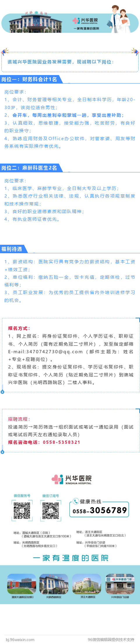 【招聘专栏】2023年兴华医院新增岗位招聘,快来加入吧~